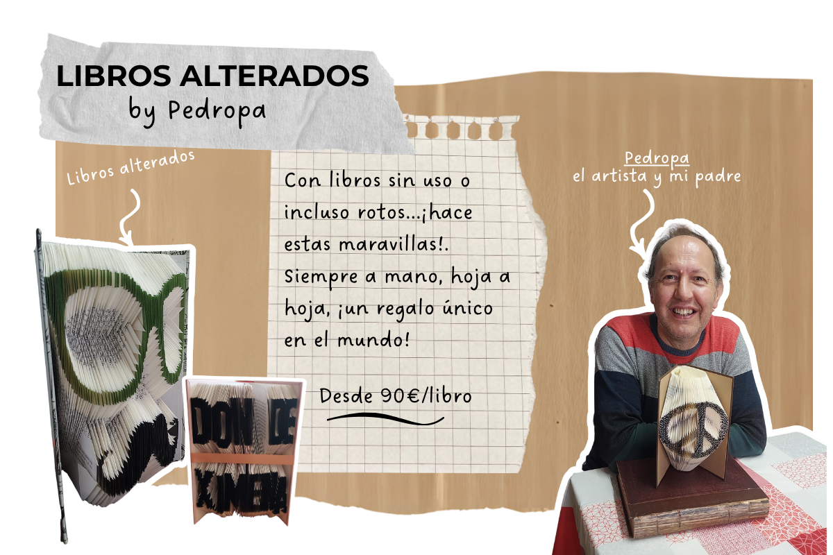 Mi padre (alias Pedropa), tras 42 años trabajando en una librería, ahora da una segunda vida a los libros creando esculturas con ellos.